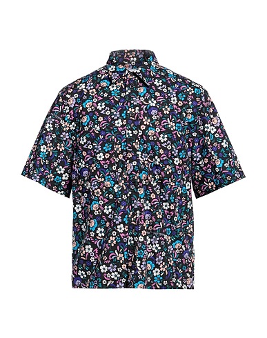 regular-fit shirt, woven, floral-print, no appliqués, classic collar, short sleeves, button fastenings, two chest pockets