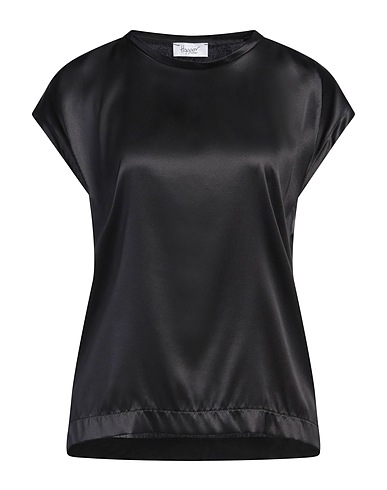 top, satin, solid color, no appliqués, crewneck, short sleeves, stretch, dry clean, do not bleach, do not tumble dry