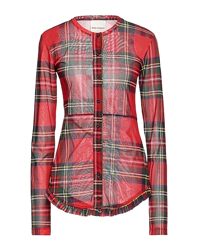 shirt, tulle, tartan pattern, gathered, crewneck, long sleeves, buttoned cuffs, button fastenings
