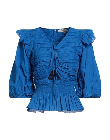 ruched top, woven, solid color, tiered, v-neck, 3/4 length sleeves, zipper fastening, hook fastenings