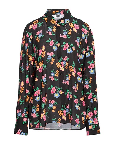 shirt, crepe, floral-print, no appliqués, classic collar, long sleeves, button fastenings
