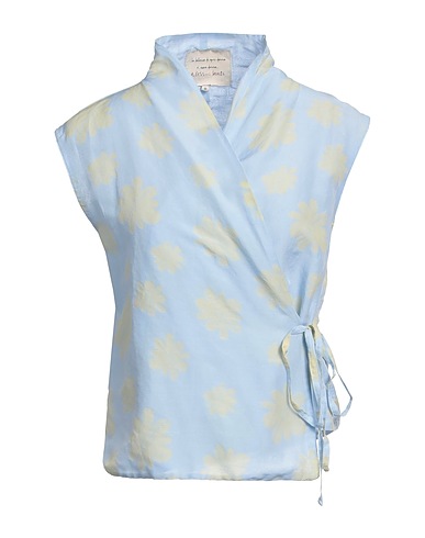 wrap top, woven, stretchy fabric, floral-print, no appliqués, v-neck, sleeveless, tie fastening