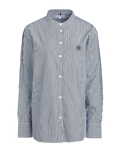 woven, brand logo, striped, mandarin collar, long sleeves, buttoned cuffs, button fastenings, no pockets, shirt