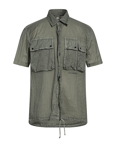 safari shirt, shell, solid color, brand logo, classic collar, short sleeves, snap fastenings, one chest pocket, drawstring hem, machine wash or dry clean, do not bleach, do not tumble dry, this brand runs small
