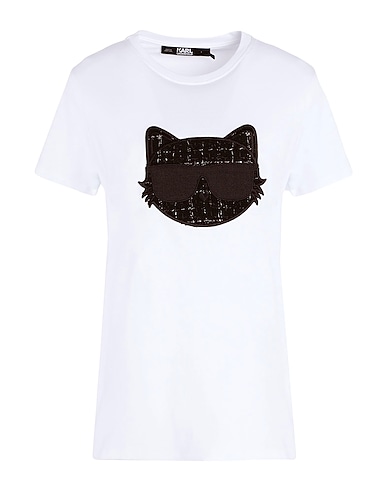 tweed, jersey, lamé, embroidered, solid color with appliqués, crewneck, short sleeves, no pockets, printed t-shirt