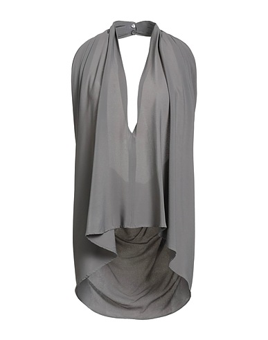 top, crepe, solid color, open back, deep neckline, sleeveless, button fastenings, dry clean, do not bleach, do not tumble dry
