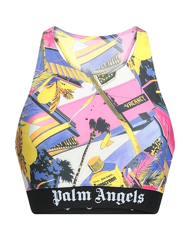synthetic jersey, brand logo, multicolor, crewneck, sleeveless, no pockets, stretch, sports bra