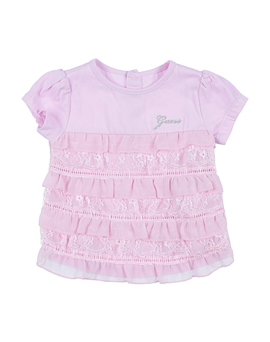 jersey, crepe, brand logo, lace trims, solid color, crewneck, short sleeves, snap fastenings, no pockets, stretch