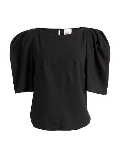 woven, no appliqués, solid color, crewneck, short sleeves, puffed sleeves, 1 button, without pockets, stretch, top