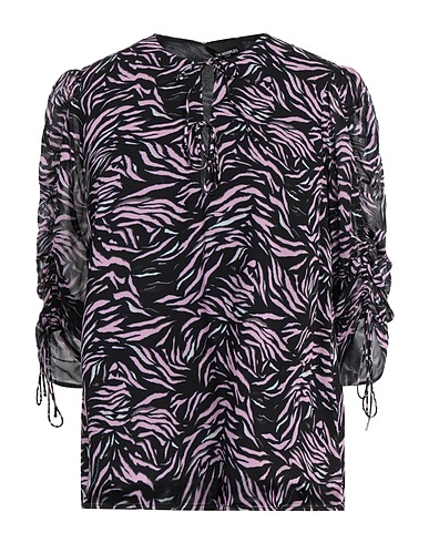 crepe, gathered, zebra-print, bow-tie neckline, 3/4 length sleeves, no pockets, top