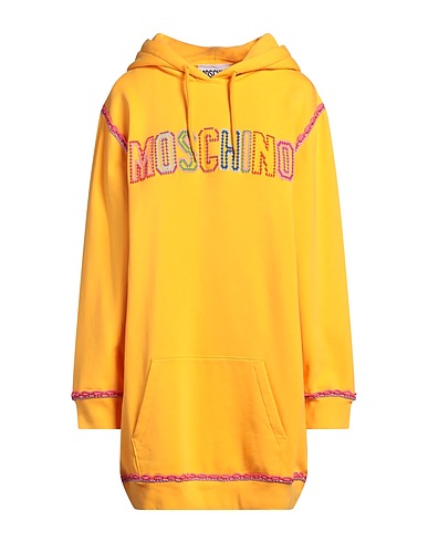 t-shirt dress, fleece, brand logo, embellished, solid color with appliqués, hooded, long sleeves, unlined, single pocket