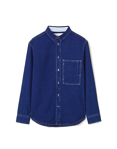 canvas, no appliqués, solid color, medium wash, classic collar, long sleeves, buttoned cuffs, button fastenings, single chest pocket