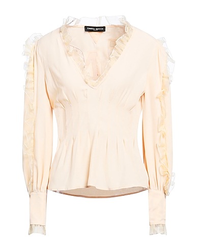 chiffon, organza, embroidered, brand logo, solid color with appliqués, v-neck, long sleeves, zipper fastening, no pockets, hand wash or dry clean, do not tumble dry, do not bleach, ruched top