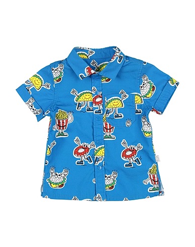 woven, brand logo, cartoon print, classic collar, short sleeves, snap fastenings, single chest pocket, machine wash, do not tumble dry, do not bleach