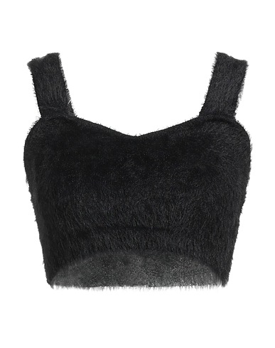 knitted, brushed-felt, lightweight knit, brand logo, solid color, v-neck, sleeveless, without pockets, machine wash, do not bleach, do not tumble dry, crop top