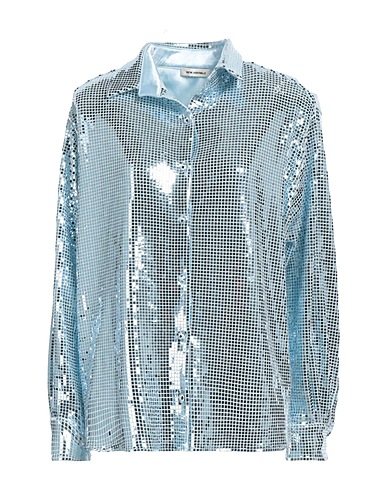 long shirt, knitted, lightweight knit, sequins, solid color with appliqués, classic collar, long sleeves, buttoned cuffs, button fastenings, without pockets, do not dry clean, do not bleach, do not tumble dry, do not iron