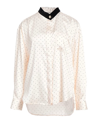 shirt, satin, polka-dot, velvet trims, mandarin collar, long sleeves, button fastenings, one chest pocket, do not wash, do not bleach, do not tumble dry