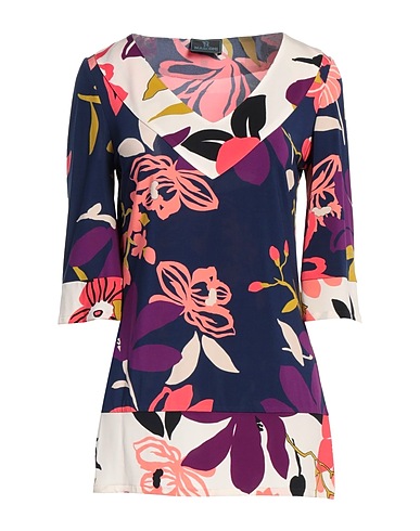 top, jersey, no appliqués, floral-print, v-neck, 3/4 length sleeves, without pockets, stretch, dry clean, do not bleach, do not tumble dry