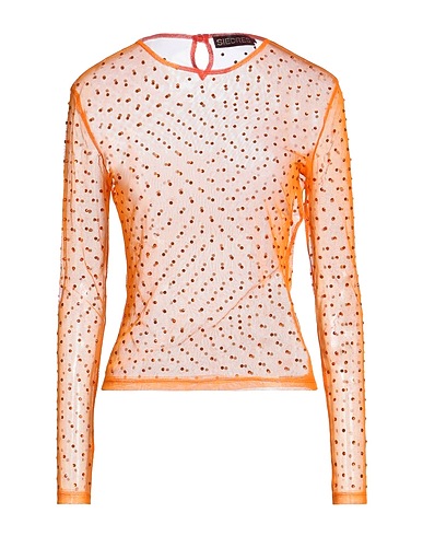top, tulle, crystals, solid color with appliqués, crewneck, long sleeves, 1 button, dry clean, do not bleach, do not tumble dry