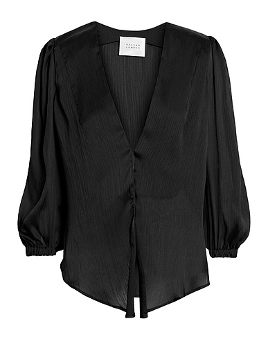top, satin, no appliqués, solid color, deep neckline, long sleeves, snap fastenings, without pockets, dry clean, do not bleach, do not tumble dry