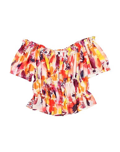 chiffon, gathered, floral-print, off-the-shoulder, short sleeves, without pockets, machine wash or dry clean, do not bleach, do not tumble dry