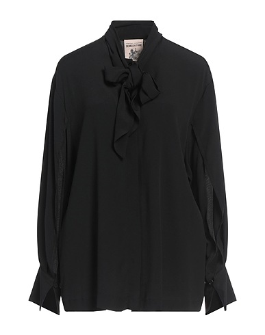 bow shirt, crepe, no appliqués, solid color, long sleeves, buttoned cuffs, button fastenings, without pockets, dry clean, do not bleach, do not tumble dry