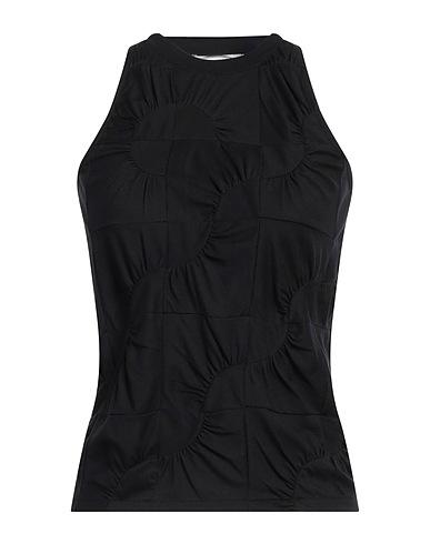 top, jersey, solid color, gathered, crewneck, sleeveless, without pockets, machine wash, do not bleach, do not tumble dry