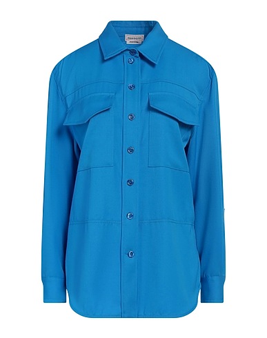 safari shirt, cool wool, solid color, no appliqués, classic collar, long sleeves, buttoned cuffs, button fastenings, two chest pockets, contains non-textile parts of animal origin, dry clean, do not bleach, do not tumble dry