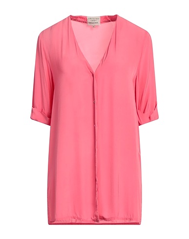 shirt, crepe, solid color, brand logo, v-neck, short sleeves, button fastenings, machine wash, do not bleach, do not tumble dry