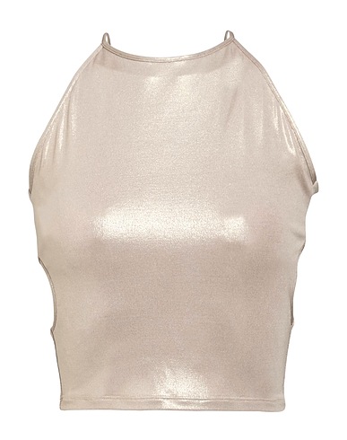 top, jersey, metallic, solid color, no appliqués, open back, crewneck, sleeveless, stretch, hand wash, do not bleach, do not tumble dry