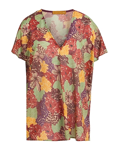printed t-shirt, knitted, metallic, lightweight knit, floral-print, no appliqués, v-neck, short sleeves, hand wash or dry clean, do not bleach, do not tumble dry