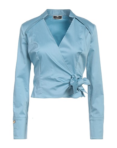 wrap top, woven, solid color, no appliqués, mandarin collar, long sleeves, tie fastening, stretch, hand wash or dry clean, do not bleach, do not tumble dry, this brand runs small
