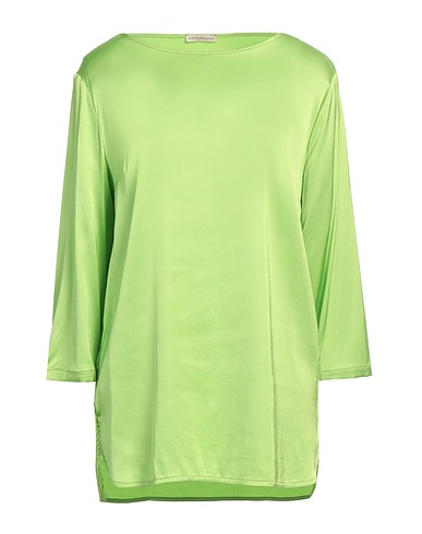top, satin, solid color, no appliqués, crewneck, 3/4 length sleeves, stretch, contains non-textile parts of animal origin, machine wash or dry clean, do not bleach, do not tumble dry