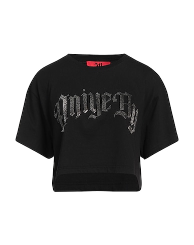 t-shirt, jersey, solid color with appliqués, brand logo, crewneck, short sleeves, hand wash, do not bleach, do not tumble dry
