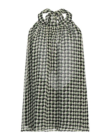 top, crepe, geometric-print, no appliqués, turtleneck, sleeveless, hand wash or dry clean, do not bleach, do not tumble dry