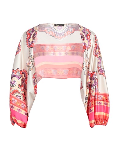satin, multicolor, no appliqués, deep neckline, long sleeves, stretch, machine wash or dry clean, do not bleach, do not tumble dry