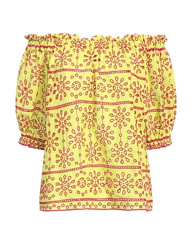 off-the-shoulder top, broderie anglaise, two-tone, no appliqués, short sleeves, machine wash or dry clean, do not bleach, do not tumble dry