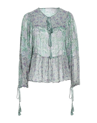 bohemian blouse, woven, floral-print, tassels, crewneck, long sleeves, tie fastening, dry clean, do not bleach, do not tumble dry