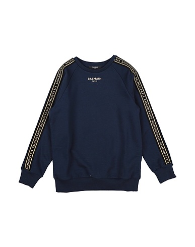 french terry, metallic, solid color with appliqués, brand logo, side seam stripes, crewneck, long sleeves, machine wash, do not bleach, do not tumble dry