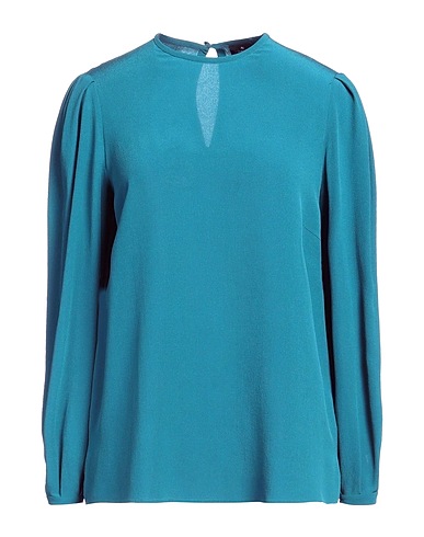 top, crepe, solid color, no appliqués, crewneck, long sleeves, 1 button, dry clean, do not bleach, do not tumble dry