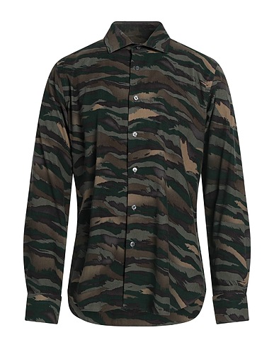 slim-fit shirt, corduroy, camouflage-print, no appliqués, classic collar, long sleeves, buttoned cuffs, button fastenings, machine wash or dry clean, do not bleach, do not tumble dry