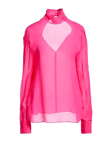top, chiffon, solid color, no appliqués, turtleneck, long sleeves, button fastenings, dry clean, do not bleach, do not tumble dry