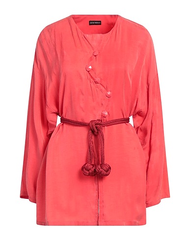 long shirt, satin, solid color, belt, v-neck, long sleeves, button fastenings, dry clean, do not bleach, do not tumble dry, this brand runs small