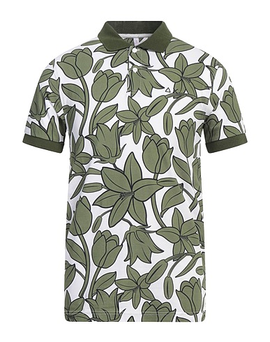 piqué, floral-print, brand logo, polo collar, short sleeves, button fastenings, side slit hemline, stretch, hand wash, do not bleach, do not tumble dry
