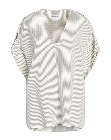 top, woven, striped, tabs, v-neck, short sleeves, dry clean, do not bleach, do not tumble dry, this brand runs small