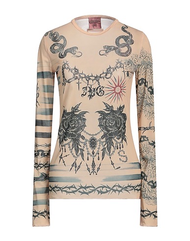 printed t-shirt, synthetic jersey, floral-print, brand logo, crewneck, long sleeves, stretch, hand wash or dry clean, do not bleach, do not tumble dry