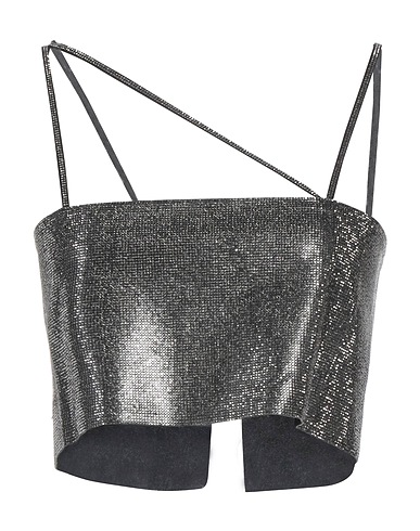 crop top, satin, solid color with appliqués, crystals, square neckline, sleeveless, hook fastenings, stretch, hand wash, do not bleach, do not tumble dry, do not iron, this brand runs small