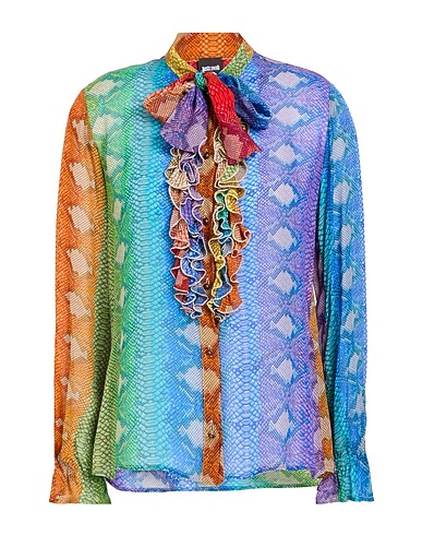 ruched shirt, chiffon, snakeskin-print, ruffles, bow-tie neckline, long sleeves, button fastenings, dry clean, do not bleach, do not tumble dry