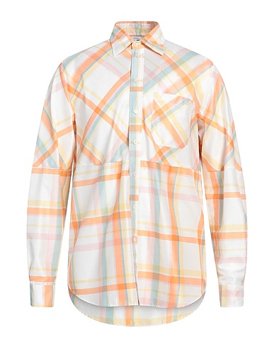 oversized shirt, shantung, tartan pattern, no appliqués, classic collar, long sleeves, buttoned cuffs, button fastenings, one chest pocket, hand wash or dry clean, do not bleach, do not tumble dry