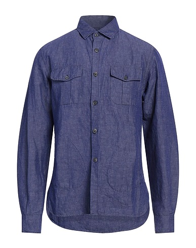 chambray, solid color, no appliqués, dark wash, classic collar, long sleeves, button fastenings, two chest pockets, machine wash or dry clean, do not bleach, do not tumble dry